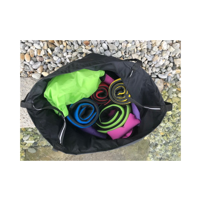 Complete set of water therapy aids including a waterproof bag with fabric noodles.